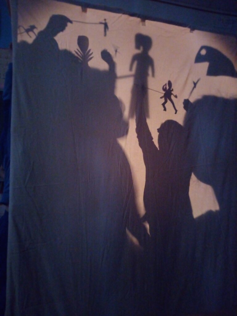 L’atelier théâtre d’ombre que nous proposons permet d’explorer cette discipline en testant les différents éléments essentiels à sa pratique : lumière, écran, silhouette. Nous proposons toute une série de jeux et d’exercices qui permettent aux enfants d’appréhender cette discipline d’une façon ludique. Il est possible de s’en tenir à une initiation ou bien de concevoir un projet où les enfants créeront leurs silhouettes et répéterons une courte scène en ombre.